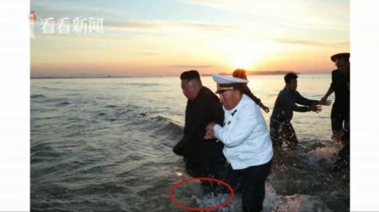 报道称,24日凌晨朝鲜从咸镜南道宣德地区向东部海域发射两枚武器。报道配发的照片显示,与前几次不同的是,金正恩当天先乘坐快艇,下船后再趟水前行,抵达一处岛屿,裤脚和鞋子浸泡在水里,全都湿透了。