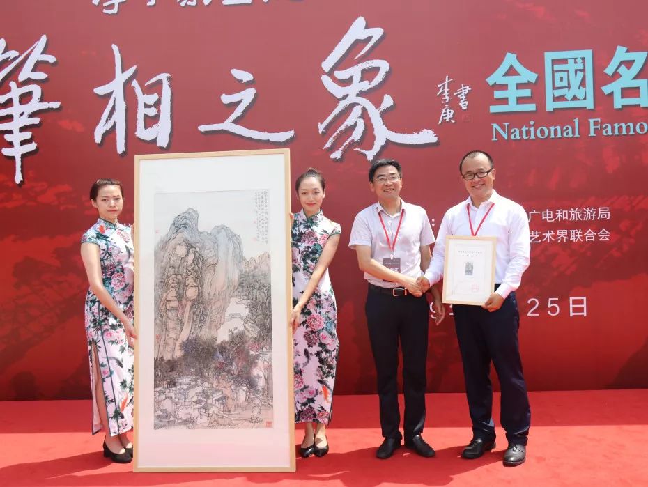 仪式现场,李可染画院向凤凰镇人民政府赠画。