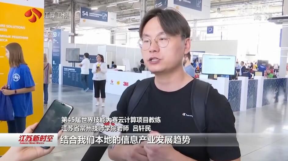 第45届世界技能大赛云计算项目教练、江苏省常州技师学院老师吕轩民:结合我们本地的信息产业发展趋势,和世界技能大赛云计算项目的比赛要求和纲领,把云计算的核心课程加入到我们原有的课程体系当中,这样就使得我们培养出来的学生能够更加符合产业的发展需求。