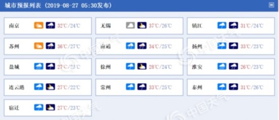 昨天,江苏秋老虎“发威”,午后一片红红火火,南部部分地区出现高温,像苏州、无锡都超过了35℃。夜间宿迁、淮安、连云港等地出现了雷雨。