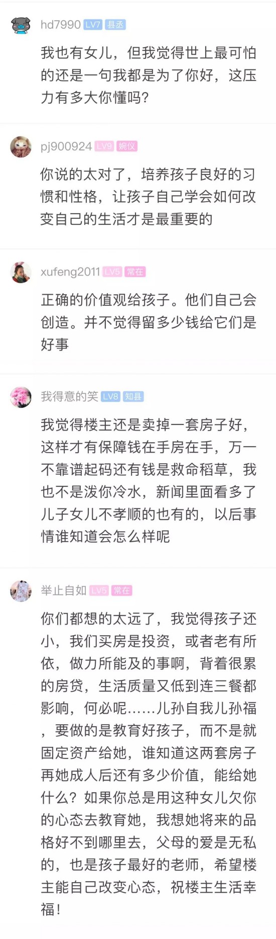 “虽然女儿年纪还不大,但是给她准备了两套房子,想想自己每天吃腌萝卜和咸菜,想在她结婚前把贷款还清。做父母的真是为自己的子女操碎了心!……”