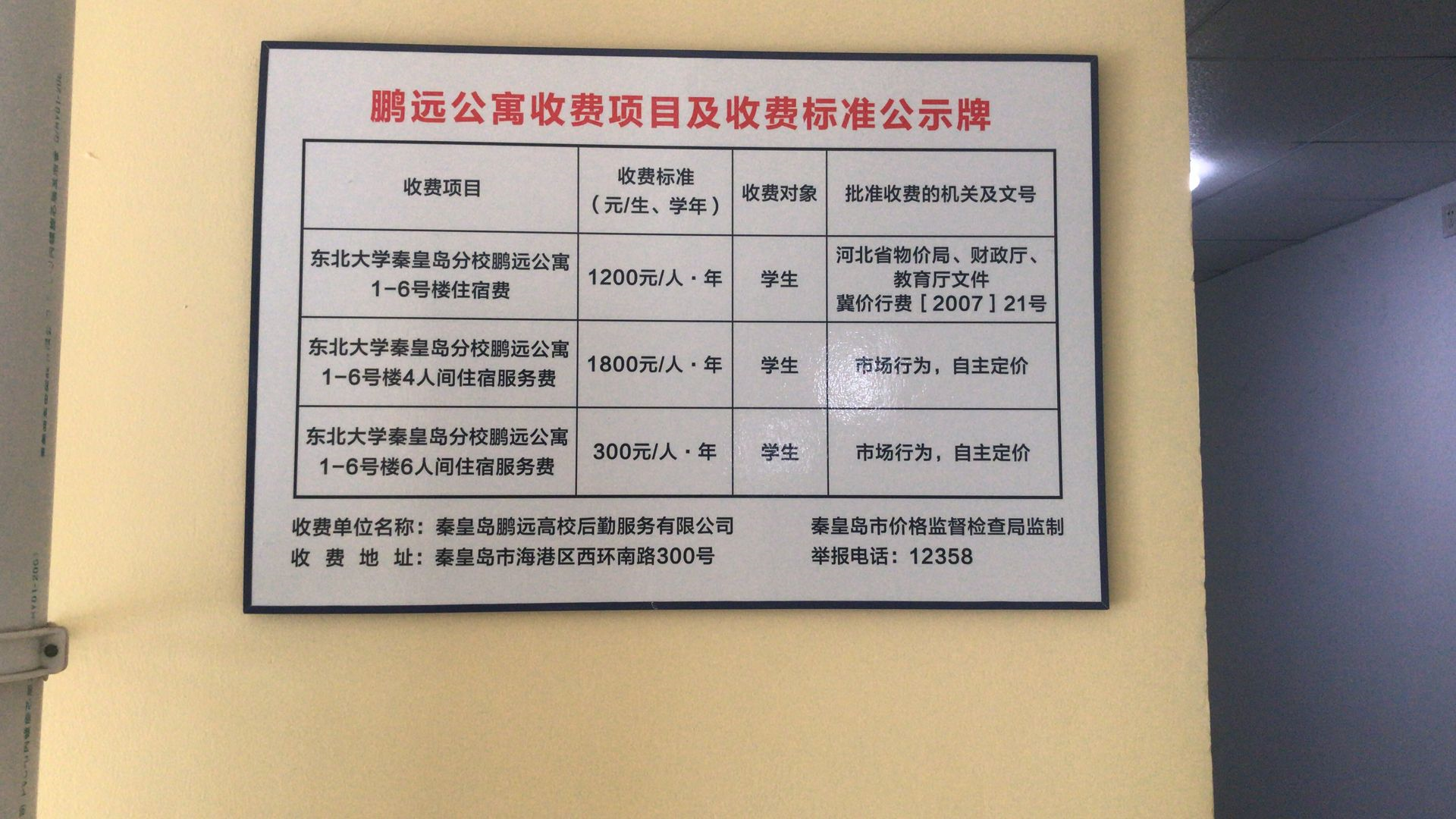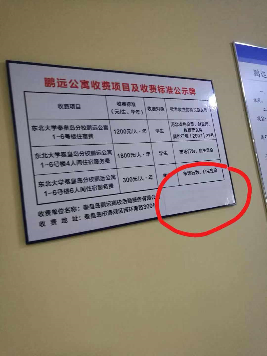 此外,鹏远公寓在经营上也是疑点重重,一是鹏远宿舍费收取标准缺少政府批文公示,二是收费后公司不予开设发票,三是老生住宿费金额只能现金收取。此前,东北大学秦皇岛分校曾联合物价局对其进行起诉,最终以败诉收场。