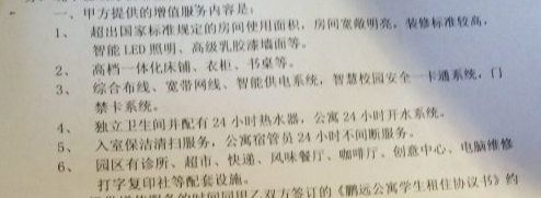 鹏远公寓增值服务协议书关于增值服务内容说明