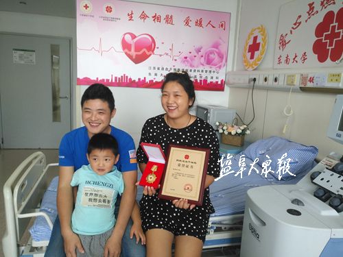 8月22日,在亭湖区红十字会工作人员庄青生的陪伴下,金玉丹及爱人和孩子来到南京东南大学附属中大医院,开始注射动员针做事前准备。27日上午进行了造血干细胞采集。历时四小时,共采集造血干细胞悬液834毫升。紧接着,金玉丹的“生命种子”在第一时间快速运送到受捐者所在医院,输入到受捐者体内。据了解,此次救助的是我省有着一双儿女的母亲。
