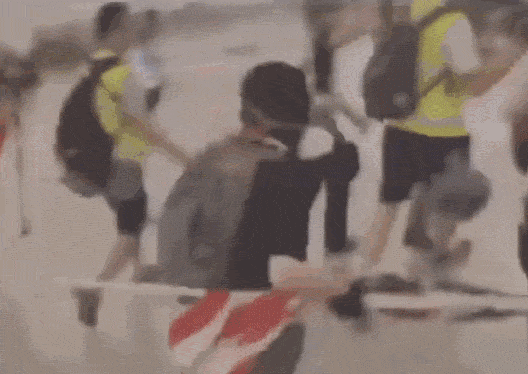 从互联网流传的一段视频可以看到,付国豪遭非法禁锢、殴打后,有救护人员到场协助将其救出,再用担架将他送上救护车。就在救护人员用担架推走付国豪期间,一名蒙面男子从后追赶,走近担架并用手上的美国国旗旗杆对付国豪进行击打。↓