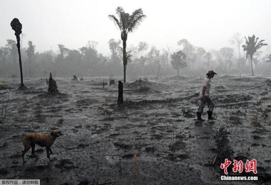 当地时间8月26日,巴西农民Aurelio Andrade走过亚马孙热带雨林被烧毁的地区。8月26日公布的数据显示,巴西亚马孙地区又发生了数百起大火,而与此同时,军用飞机正在向受灾严重地区喷水