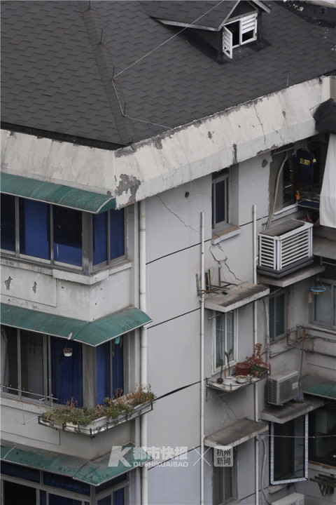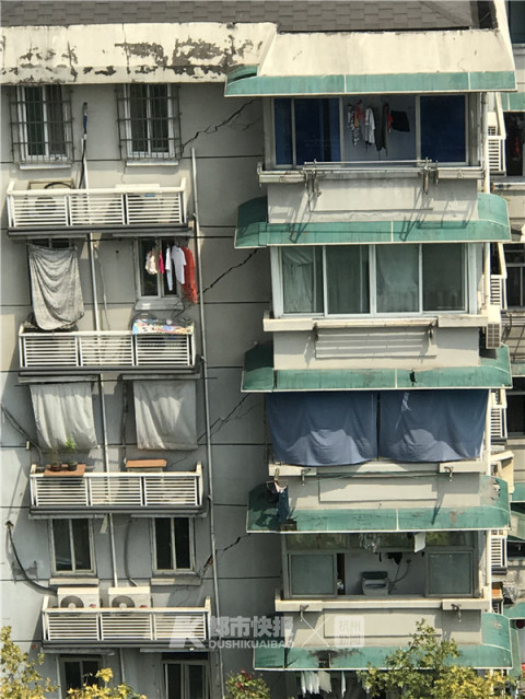 刚刚,记者进入树园小区,发现涉事的31幢住宅楼多处已出现明显的裂缝,现场已经可以肉眼看出,房屋有沉降。