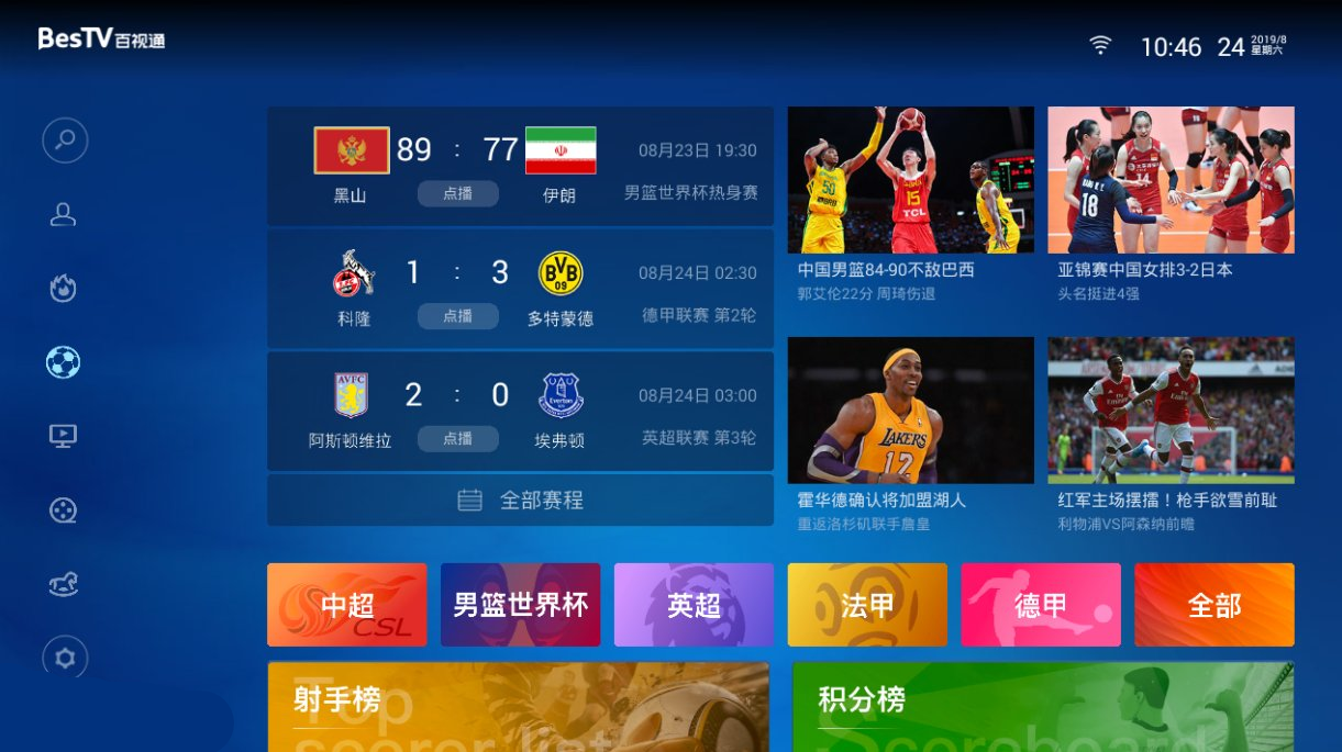 智能电视/机顶盒用户可以通过当贝市场下载咪咕视频TV版观看2019篮球世界杯直播内容。