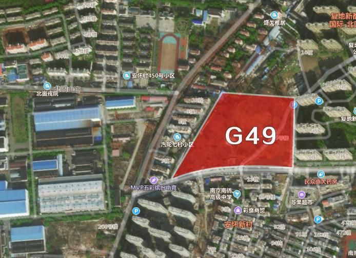 小市G49地块:(鼓楼区小市街道起重机械厂地块),东至规划道路,南至规划安怀东路,西至南京华宏(集团)有限公司等,北至规划北固山路。总用地面积46886.55㎡,出让面积43707.57㎡,用地性质为二类居住用地,容积率1.01≤R≤2.8,限高60米,起拍总价24.2亿,最高限价35亿,起拍楼面价19774元/㎡,最高限价28599元/㎡,竞买保证金7.26亿元,经过82轮,最终被葛洲坝竞得,以总价32.3亿元成交,楼面价26393元/㎡。这个价格与区域内的鼓印蘭园(22413元/㎡)相比,上涨约3980元/㎡。