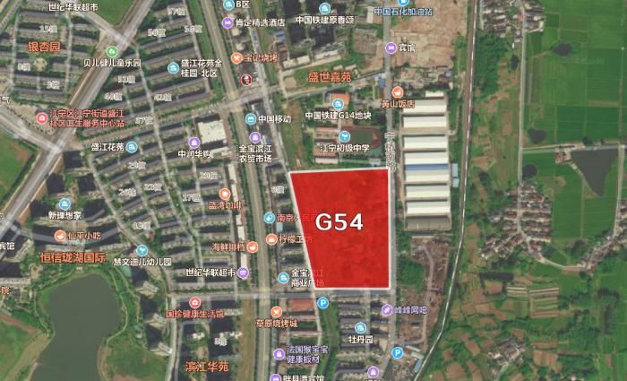 江宁滨江G54地块:(江宁区江宁街道宁桥南路以西、纬五路以北地块),东至宁桥南路,南至纬五路,西至现状,北至现状。总用地面积43211.72㎡,出让面积43211.72㎡,用地性质为二类居住用地,容积率1.0≤R≤2.0,限高60米,起拍总价6.75亿,最高限价9.5亿,起拍楼面价7810元/㎡,最高限价10992元/㎡,竞买保证金1.35亿元。经过39轮,最终被南京中北置业开发有限公司竞得,以总价8.65亿元成交,楼面价10009元/㎡。