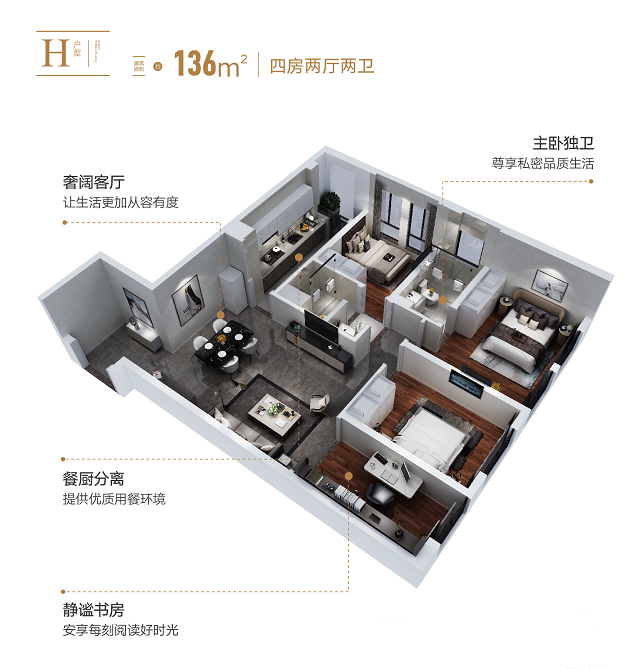紫辉时代广场建筑面积约136㎡四房两厅四卫