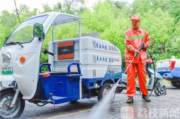 这种车辆轻便小巧,方便穿梭于人来人往的人行道,保洁员可通过手持式高压清洗枪将路面漂浮物、灰尘冲到慢车道路牙。“电动式”单兵作业水洗车大大提高了环卫人员的工作效率。