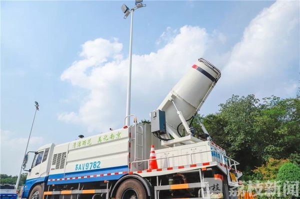 在南京的城市道路上,时常会出现一辆辆长相奇特的“喷雾抑尘车”。它们高昂着“炮头”,边缓慢行驶边向空中喷洒出非常细密的水雾。水雾在阳光的照耀下,折射出一道美丽彩虹。这种抑尘车具备喷雾抑尘和洒水等多种功能,俗称“雾炮车”。它通过高压将水雾化成与粉尘大小相当的颗粒,在风机的作用下,将水雾抛射到远方,在尘源处的上方或周边进行喷雾覆盖,可以加速灰尘降沉、增加空气湿度、改善空气质量。
