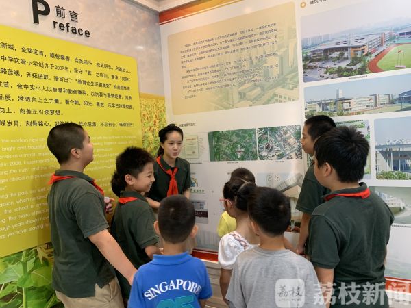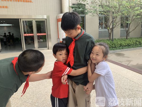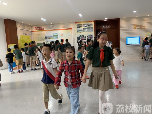 即将走进校园的一年级新生心情是怎样的?为了减轻孩子们的焦虑情绪,今天(8月28日)上午,南京市金陵中学实验小学六年级学生们用笑脸相迎一年级的学弟、学妹,带着他们参观校园、了解校史,分享他们上学的趣事。萌新们在陌生的环境体会到了温度,收获了成长的快乐。