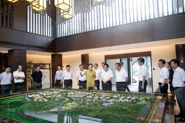 8月27日下午,省人大常委会常务副主任陈震宁,省人大常委会副主任、省总工会主席魏国强,省政府副省长王江,省人大常委会秘书长陈蒙蒙等领导到汤山温泉康养小镇调研。苏豪控股集团董事长王正喜、总裁周勇、副总裁周谦、江宁区政府区长严应骏、汤山国家级度假区党工委书记俞旭东以及中国金茂副总裁林忠海、苏豪健康总经理赵智、金茂南京常务副总经理王昌祥等相关领导同志陪同调研。省领导一行先后视察了小镇颐乐学院、文博中心、温泉中心、商业中心、养老公寓工地,在现场召开的座谈会上对小镇整体规划理念、建设品质、产品定位表示高度肯定,对小镇未来寄予厚望。