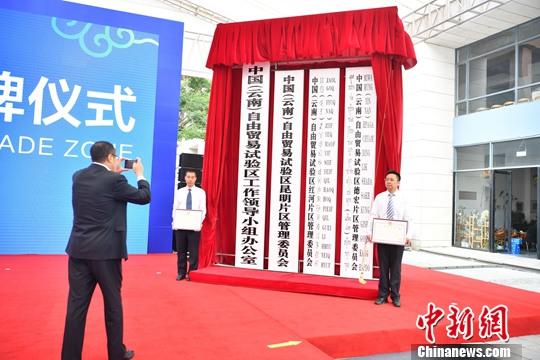 中新社昆明8月30日电 (缪超)中国(云南)自由贸易试验区挂牌仪式30日在昆明举行。