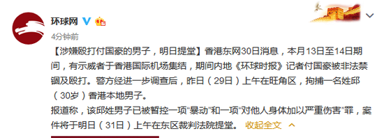 香港东网30日消息,本月13日至14日期间,有示威者于香港国际机场集结,期间内地《环球时报》记者付国豪被非法禁锢及殴打。警方经进一步调查后,昨日(29日)上午在旺角区,拘捕一名姓邱(30岁)香港本地男子。