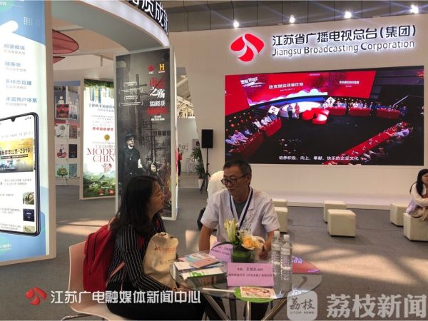 版博会现场,江苏广电总台的展台人气火爆。作为"原创大户",江苏广电总台以每年3万小时的速度在增加版权产品,影视剧、王牌综艺、健康服务、新媒体产品集群,吸引了不少市民和专业采购商的目光。