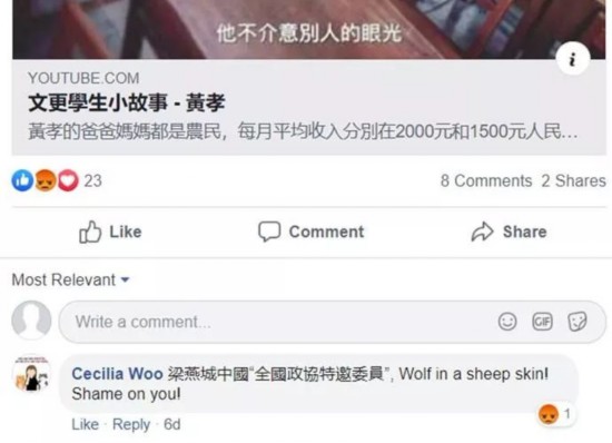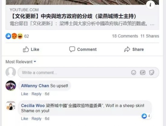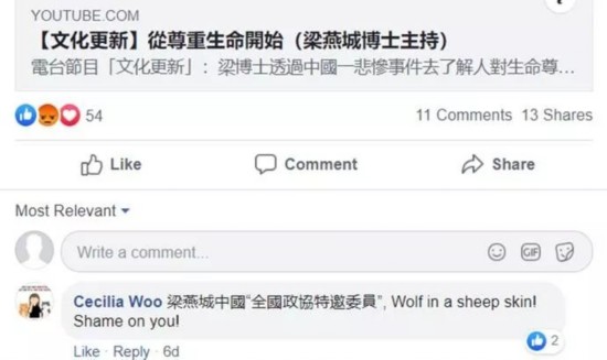 另外,在梁燕城的其他过往贴文下,也出现了疑似“水军”的账号在疯狂“抹红”他的评论。比如一个叫Cecilia Woo的账号就在梁燕城多个早前的贴文下复制粘贴着同样一段内容:[梁燕城中國“全國政協特邀委員”, Wolf in a sheep skin! Shame on you!]