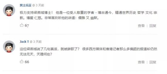 在内地一些报道了此事的加拿大资讯网站上,有网民为他鸣不平,表示他是个儒雅又幽默的人,不该因为说了几句公道话就“被辞职”。有网民还质问说,“很多西方媒体和香港记者那么多偏颇的报道却仍然无法无天,天理何在?”“虚伪的言论自由!”
