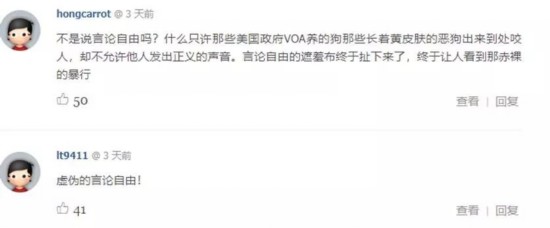 当然,在境外“顺我者言论自由,逆我者集权独裁”的恐怖舆论氛围下,他说出这番话的代价,自然是很快就遭到那些支持与同情香港极端分子的人的[网络暴力]。