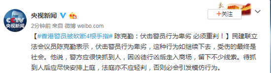 民建联立法会议员陈克勤表示,伏击警员行为卑劣,这种行为如继续下去,受伤的最终是社会。他说,警方应很快抓到人,因凶徒行凶后走入商场,留下不少线索。待抓到人后应尽快安排上庭,法庭亦不应轻判,否则必会引发模仿行为。