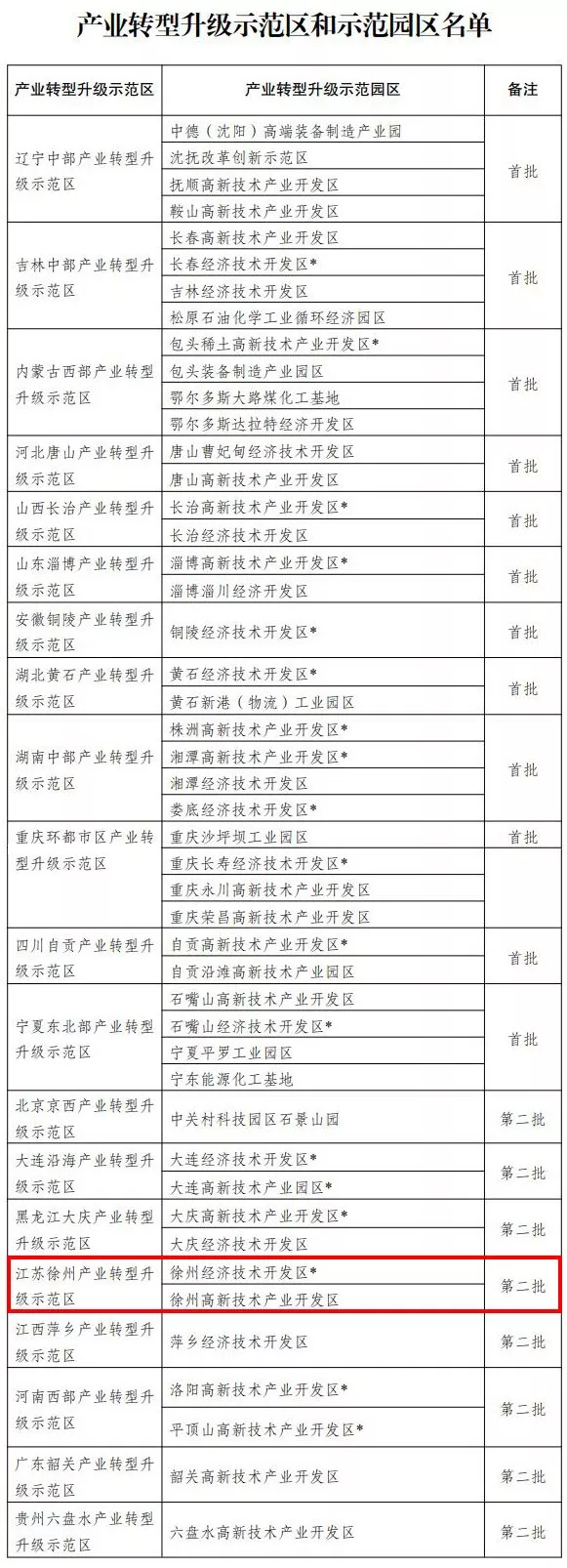 截至目前,两批产业转型升级示范区和示范园全名单如下↓
