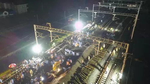 8月23日,经过工人加班加点、通宵施工,徐宿淮扬镇高铁在徐州东站成功接入京沪高铁!