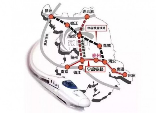 未来,从宁启铁路泰州火车站上车,通过宁启铁路向西,经过连淮扬镇铁路(时速250公里/小时)淮泰联络线,在淮安接入时速250公里/小时的徐宿淮盐高铁,在徐州接入京沪高铁,只需要4、5个小时就可以直达北京。除北京外,北方所有的一二线城市都可以高铁直达!