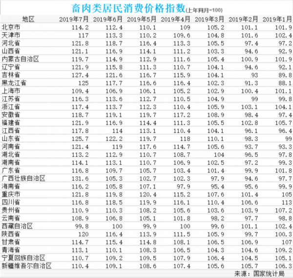 其中,广西7月畜肉类价格指数同比大涨了31.6%,居全国首位。吉林、山东、黑龙江、辽宁、福建、重庆、河北、河南、山西和陕西等10个省份的涨幅都在20%以上,分别为27.4%、25.7%、25%、21.9%、21.9%、21.8%、21.8%、21.4%和20%。