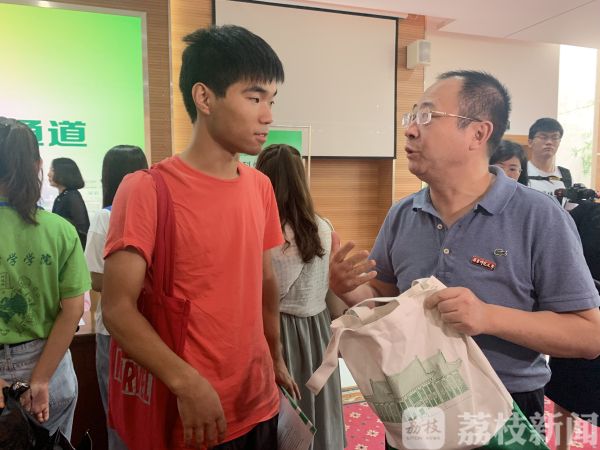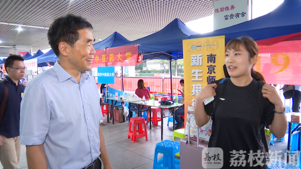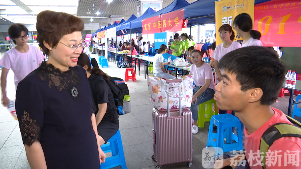 上午7点半,南京火车站南师大新生接待站迎来了三位洛阳籍新生,经过近12个小时的颠簸,各自显得有些疲惫。背着球拍的高个女生名叫姬智爽,是体育系研一学生 ,头一回来到离家这么远的外地读书,心中难免有些落寞。陈国祥校长主动聊起了她最擅长的羽毛球,气氛随即变得轻松起来。