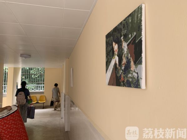 这些心灵手巧的阿姨们平时还喜欢用绘画装点宿舍区,走廊上挂的这些画,很多都是该校美院的学生和阿姨们共同完成的,每个月还会定期更换。
