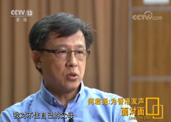 何君尧: 最难承受的也要承受,已经过了,现在难道我要半途而废,向恶势力低头?作为香港民主选举产生出来的议员,面对庞大的外部势力搞乱香港,也可以选择完全,不出声,但是面对大是大非,你要支持香港繁荣稳定。从自己的良知来讲,我要有使命感,我要知道自己应该要干什么事情,所以要发声音出来。