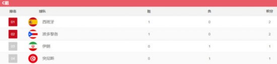 C组,西班牙队和波多黎各队分列第1和第2。西班牙队在该小组一枝独秀,波多黎各队完成对伊朗队的19分惊天逆转后晋级形势很乐观,伊朗队输给关键的对手波多黎各队后已经很难出线,实力较弱的突尼斯队在首战惨败西班牙队39分后,或将一胜难求。