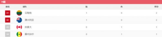H组,立陶宛队和澳大利亚队分列第1和第2,该小组是名副其实的“死亡之组”,澳大利亚队首战有惊无险地击败加拿大队后占据优势,首战狂胜塞内加尔队54分的立陶宛队展现出了强悍的战斗力,加拿大队想击败立陶宛队逆天改命难度很大,不出意外,立陶宛队和澳大利亚队将携手晋级。
