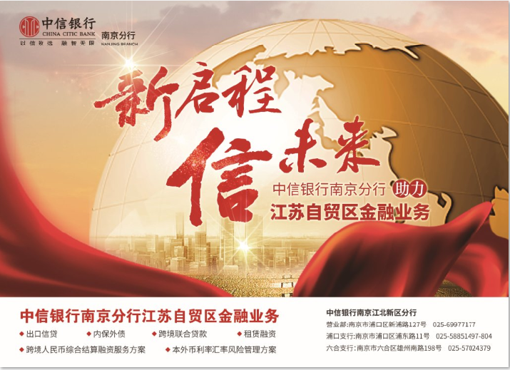 8月30日上午,中国(江苏)自由贸易试验区南京片区正式揭牌。现场宣读了《国务院关于同意新设6个自由贸易实验区的批复》,同时还举行了重大签约项目。作为唯一一家在南京江北新区成立分行的股份制商业银行,中信银行在江北大地已扎根27年,依托中信集团金融与实业并举的“基因”、强大的“中信联合舰队”协同优势,中信银行南京分行率先启动江苏自由贸易区南京江北新区的综合金融服务,赋能区内相关企业抓住机遇,实现高质量发展。