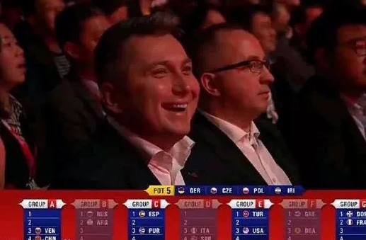 当科比和杨超越将波兰抽到中国队所在的A组时,镜头扫过,波兰篮协主席抑制不住内心的激动,露出了开心的笑容。显然,他对于这个分组非常满意。波兰媒体发表评论称,再也没有比这更好的分组了。
