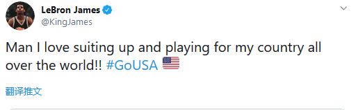 “我喜欢穿上国家队的球衣,并且在世界各地为祖国而战,加油,美国队!”他这样写道。