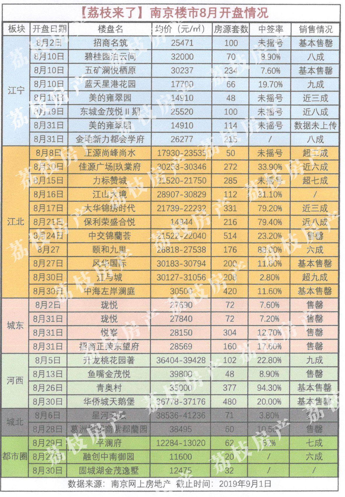 据荔枝房产统计,南京8月共30盘推出近8000套房源,相较近年同月份来看,房源入市量还是较为可观的。不过,各区域的房源去化情况冷热不均现象严重,能够“日光”的楼盘也越来越少,开盘去化惨淡也不是个别现象,不少销售顾问都连连表示房子越来越难卖了……