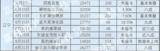 从荔枝房产统计的8月南京楼盘开盘情况数据中可以发现:热门区域房源依旧供不应求,例如“起飞”阶段的紫东核心区、主城内的玄武新中心及一直人气火爆的河西板块。此外,值得一提的是,城南在整个8月中并没有楼盘开盘推出房源。而整个8月开盘的项目中有6家不用进行公证摇号。