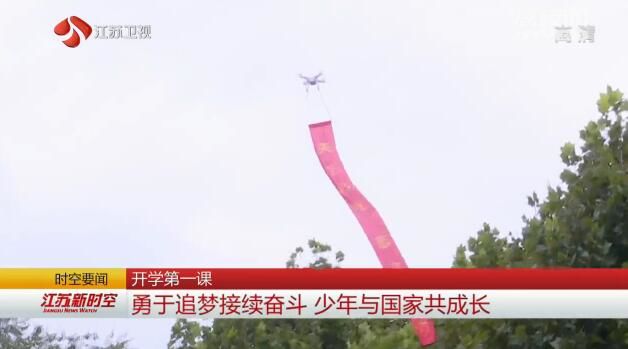 江苏台记者王尧:“在新学期伊始,南京鼓楼实验中学的孩子们用精彩的无人机表演,表达了自己对祖国的热爱,也放飞了自己在新学期的目标和梦想。”