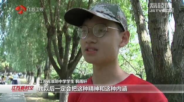 江苏省淮阴中学学生韩雨轩:“这在磨练我意志的同时,也让我领悟到了进德修业,弘毅笃行精神的内涵,我以后一定会把这种精神和这种内涵,发扬并把它传承下去。”