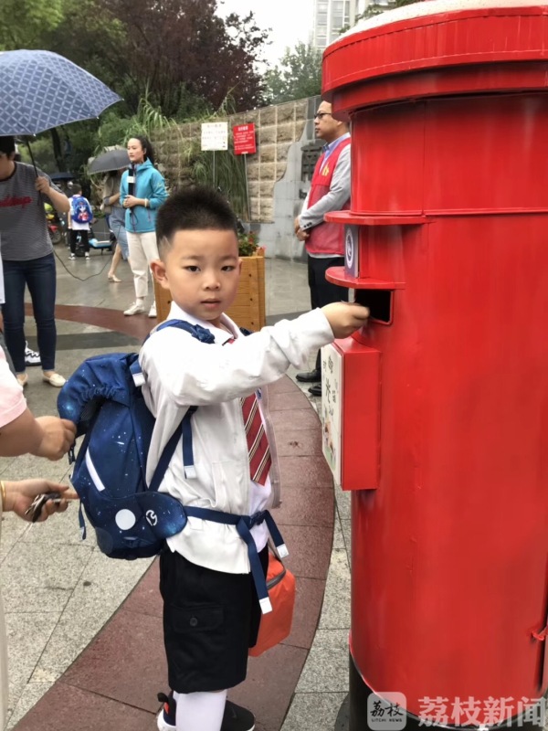 在学校大门,竖着一个红色的邮筒,一年级新生们每个人都拿着专属明信片,写下对自己未来的构想、父母对自己想说的话,小心翼翼地投进“时光邮箱”,这些都将是三年后成长礼上的珍贵礼物。一头小卷发的钱震桓,从三岁开始练游泳,已经在全国大赛上获得不少奖牌。“自由泳、蛙泳、蝶泳我都会。三年以后的我希望成为一个小科学家,因为我喜欢海底的科学家。”