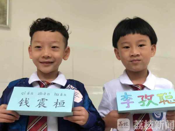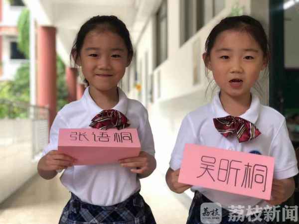 一大早,吴昕桐和张语桐两姐妹高高兴兴地背着书包,跟着爸爸妈妈来到南京理工大学实验小学。开学第一天,这对双胞胎有一个全新的名字“小学生”。两姐妹长得太像了,第一天,就让同学、老师犯了愁。不过,姐妹俩笑着说,她们俩还是很好认的。“我是姐姐,她的脸尖,我的脸圆。她的脸上有颗痣,我没有。同学们会把我讲成妹妹,会把她认成姐姐。”