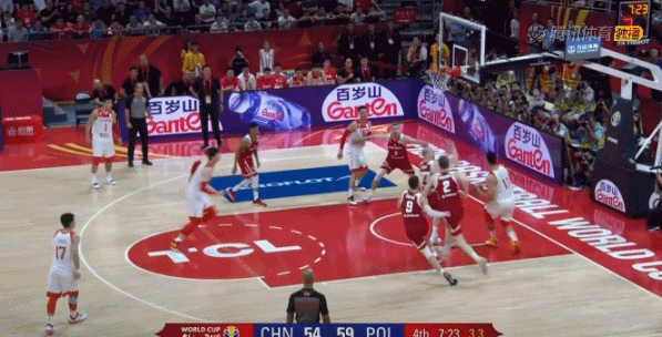 距第四节比赛还剩32秒,中国69-67领先波兰,周琦在和对手的争夺中,送出一个进攻犯规。