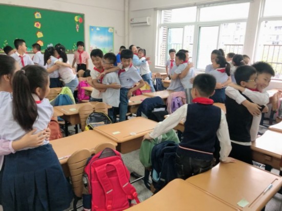 最后,还有温暖的“伙伴互动”环节!给同学一个“微笑”、一个“拥抱”、一句“祝福”,大家手拉手,一起往前走!