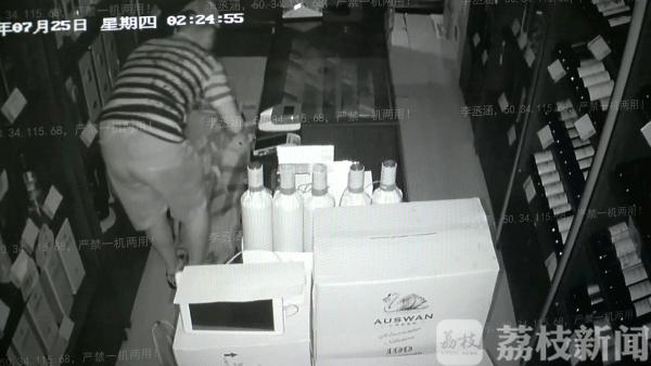 嫌疑人带着一个很大的塑料袋,将烟酒店里的烟酒装进去后离开现场。7月25日,湖南路一家烟酒店也发生了盗窃案,通过塑料袋,警方锁定嫌疑人是同一人。