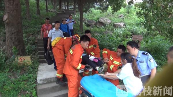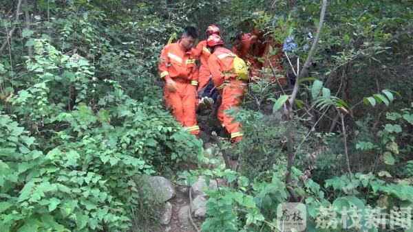 由于事故发生地大约在山顶位置,登山人员又是走的未开发的山路,现场道路崎岖,地势复杂,道路坑洼。六名消防指战员轮番上阵,行走约2公里山路,经过40分钟左右的时间,成功将伤员抬至山下,送上了120救护车往医院救治。