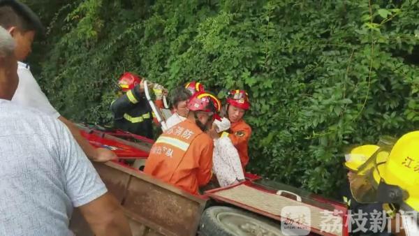 由于三轮车侧倾于路边的斜坡上,为防止侧翻车辆下滑,对被困者造成二次伤害,数名消防指战员站到电动三轮车下方紧紧抵住。一名消防员从上方车门进入车内,将被困者抱起,托举至车辆上方担架上,救援人员将担架安稳地送至120急救车。
