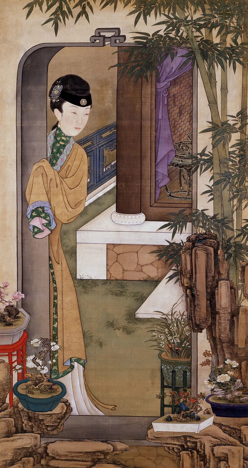 清人画雍正围屏美人图轴